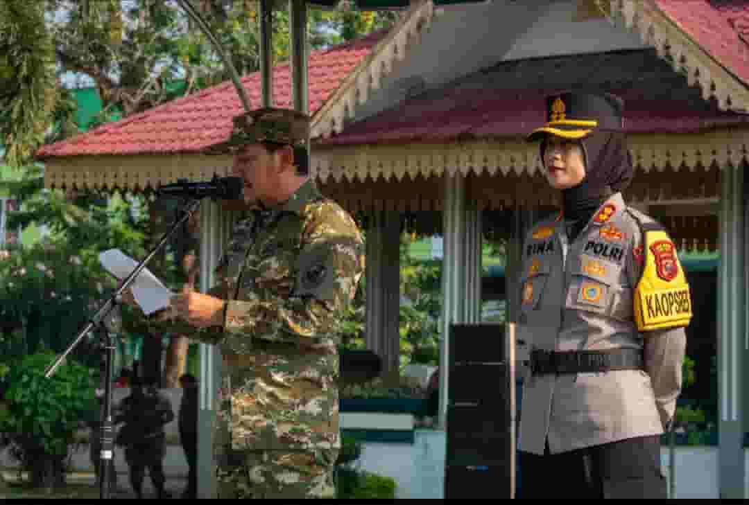 Didampingi Kapolres Tebing Tinggi AKBP Rina Frillya, Wali Kota membacakan amanat tertulis Kapolri Jenderal Listyo Sigit Prabowo.