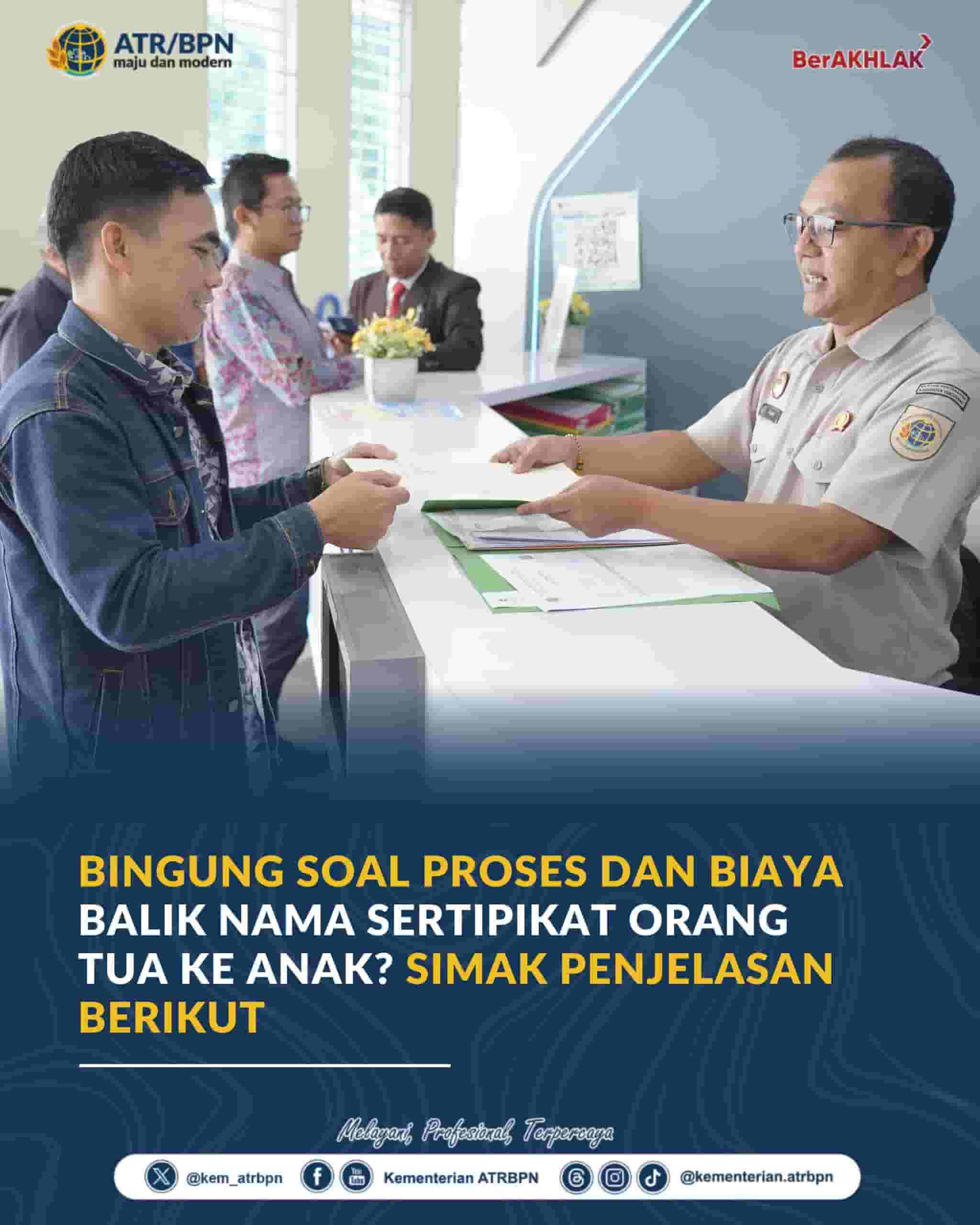 Jakarta ,TOPINFORMASI.COM- Proses pengalihan hak atas tanah dari orang tua kepada anak melalui balik nama sertipikat masih kerap membingungkan masyarakat. Untuk itu, Kementerian Agraria dan Tata Ruang/Badan Pertanahan Nasional memberikan penjelasan agar masyarakat memahami tahapan, biaya, serta aspek hukum yang terlibat.