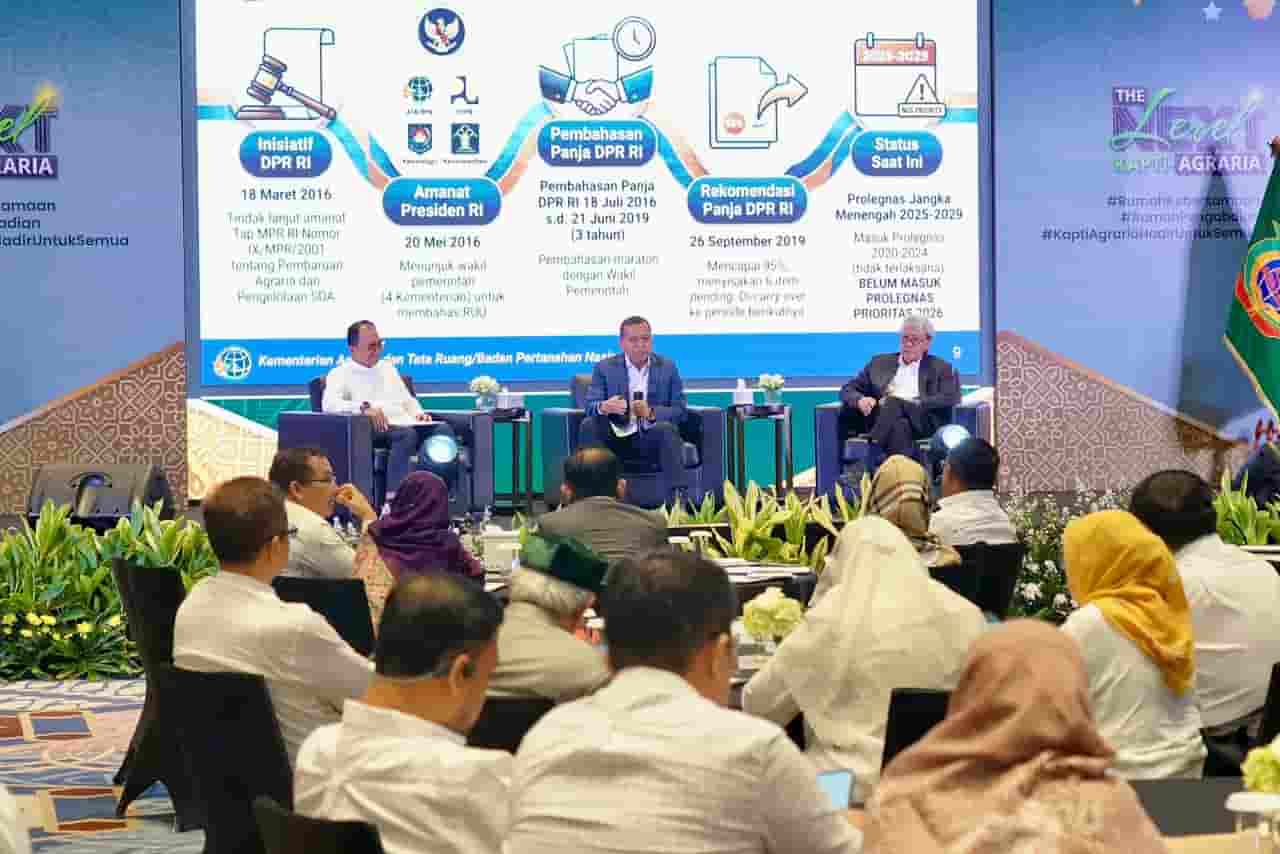 JAKARTA – Kementerian Agraria dan Tata Ruang/Badan Pertanahan Nasional (ATR/BPN) membuka ruang kolaborasi dengan berbagai pihak dalam proses penyusunan Rancangan Undang-Undang (RUU) Administrasi Pertanahan. Salah satunya melalui dialog strategis bersama Keluarga Alumni Pendidikan Tinggi-AGRARIA (KAPTI-AGRARIA) yang digelar di Fairmont Jakarta, Jumat (6/3/2026).