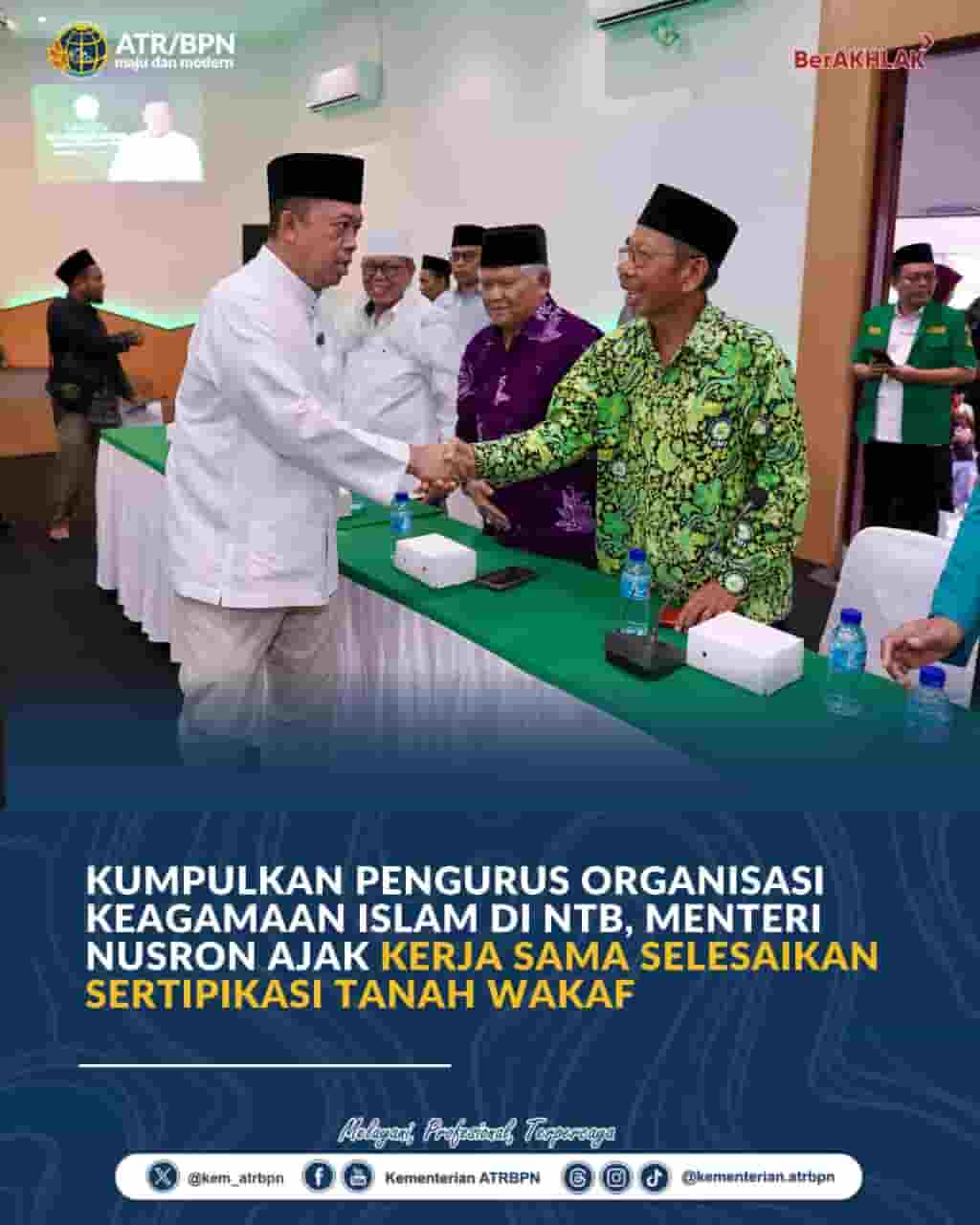 Menteri Nusron Ajak Ormas Islam di NTB Percepat Sertipikasi Tanah Wakaf