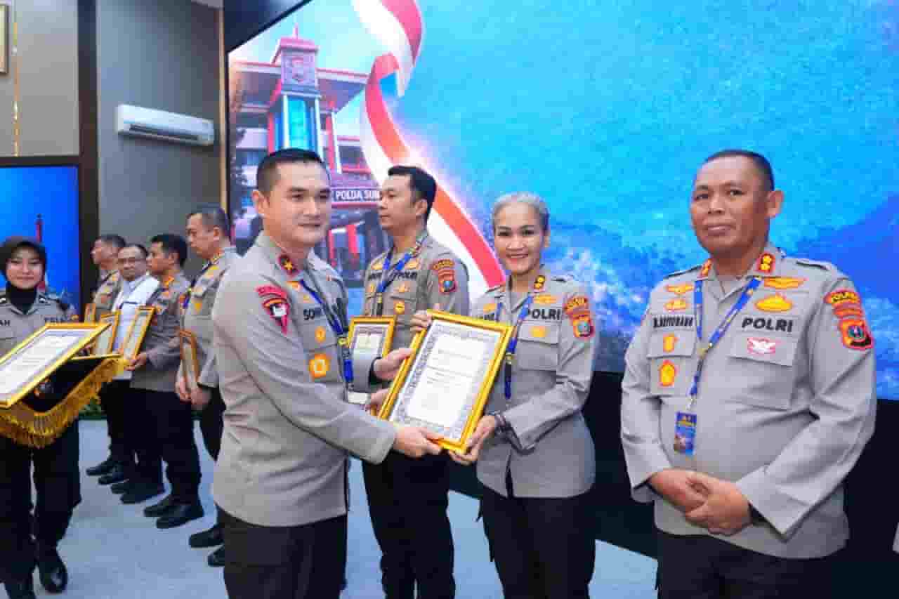 Penghargaan diserahkan langsung oleh Kapolda Sumut, Whisnu Hermawan Februanto, kepada Kapolres Pematangsiantar, Sah Udur Sitinjak, dalam kegiatan Rapim yang berlangsung di Aula Tribrata Mapolda Sumut, Rabu (25/2/2026).