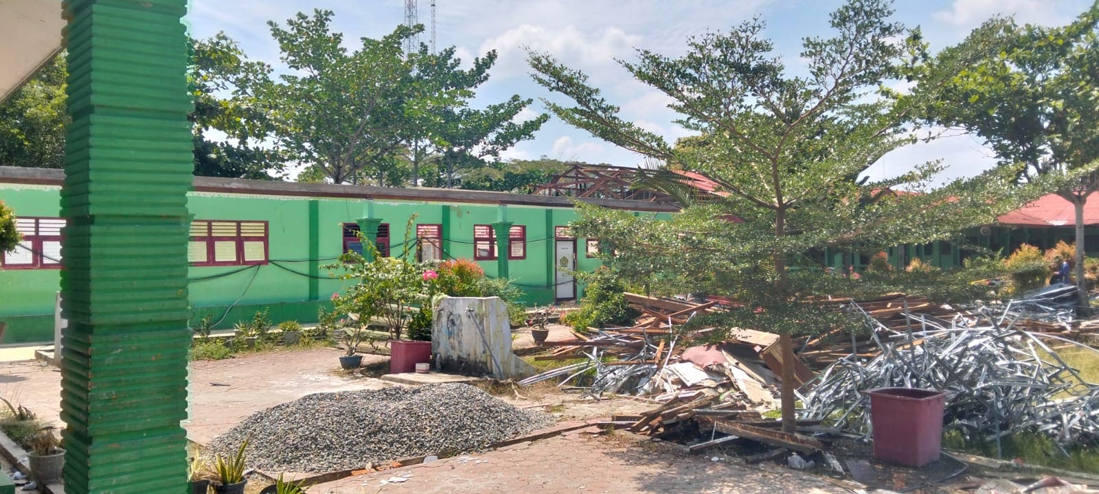 Sementara itu, Zainudin, warga setempat, mempertanyakan keberadaan material hasil pembongkaran gedung lama, khususnya seng bekas atap bangunan.