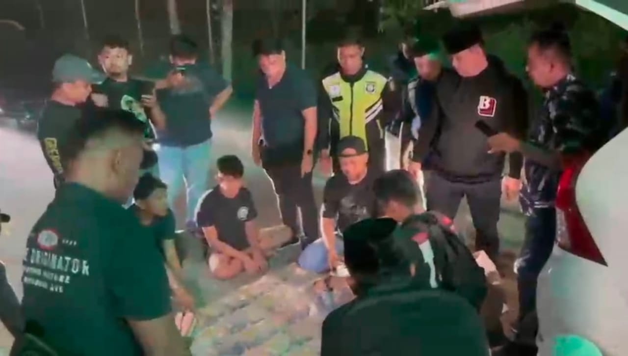 Dari rekaman video penangkapan, terlihat dua pria sedang diamankan, satu mengenakan baju kaos putih, dan satu lagi kaos hitam dengan tangan di borgol”.
