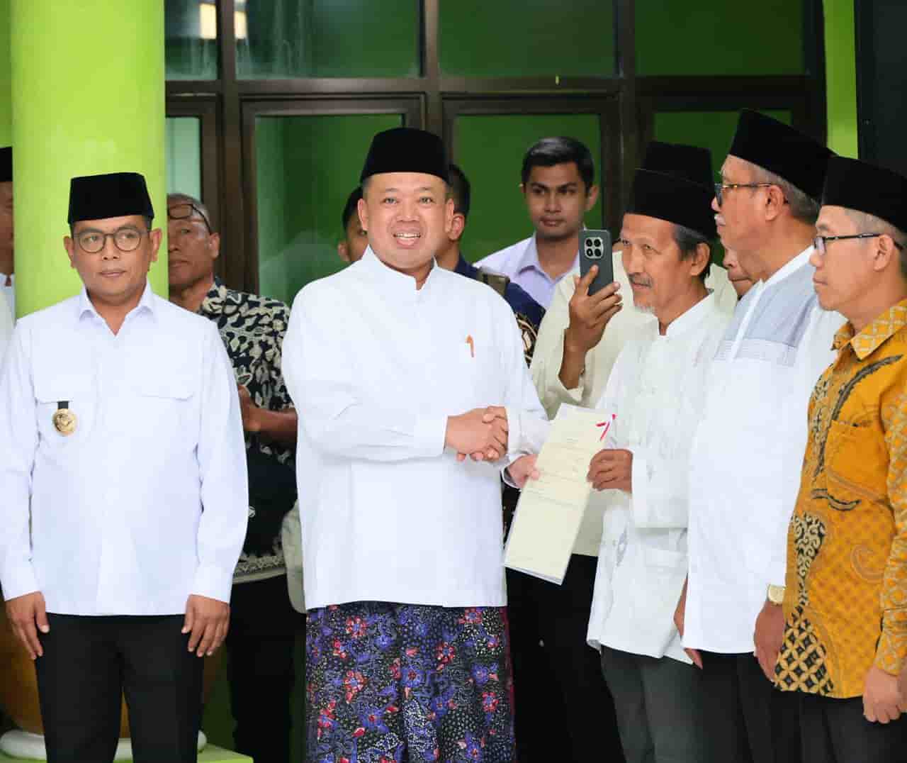 “Wakaf ini milik umat Islam. Pelepasan dari hak individu kepada publik, kepada umat. Karena itu, negara hadir untuk memastikan tanah wakaf memiliki kepastian hukum melalui sertipikasi. Saya minta ini ‘dikeroyok’ bersama,” ujar Nusron Wahid usai menyerahkan sertipikat.